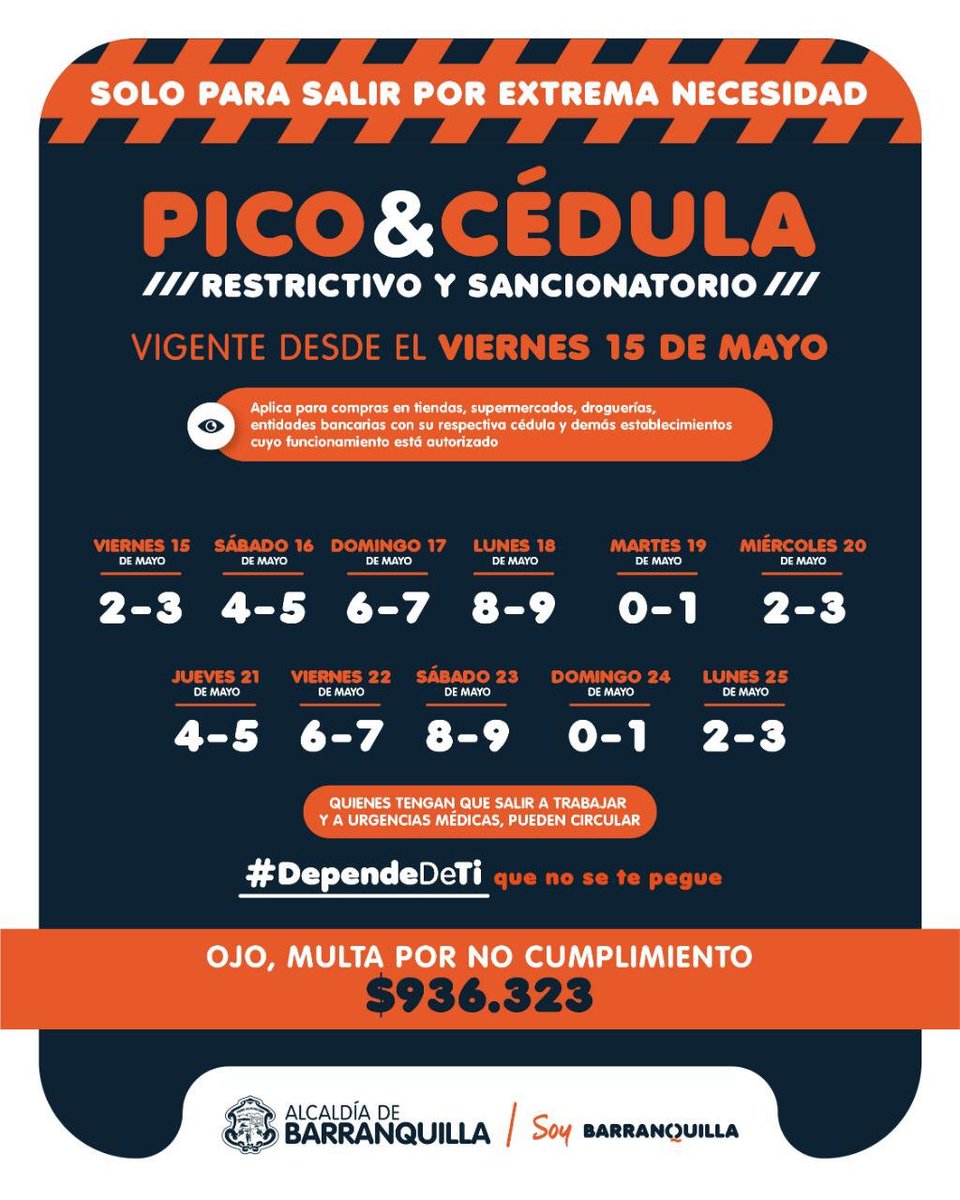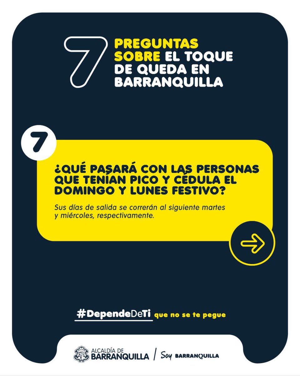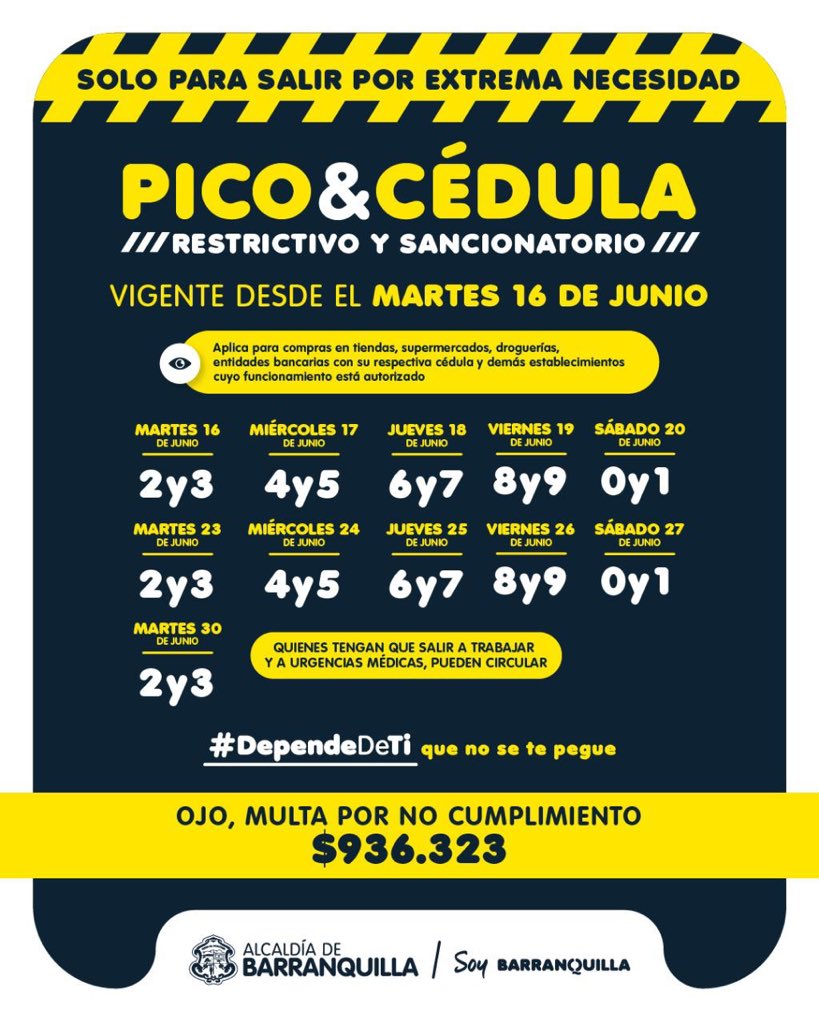 Alcaldia De Barranquilla On Twitter Ten En Cuenta El Pico Y Cedula Que Estara Vigente En La Ciudad A Partir Del 1 De Julio De 2020 Recuerda Que El 3 De Julio from pbs.twimg.com El toque de queda se refiere a la prohibición o restricción, establecida por instituciones gubernamentales, de circular libremente por las calles de una ciudad o permanecer en lugares públicos. Toque de queda empezará a medianoche. Girardota anuncia toque de queda y pico y cédula para noviembre. En barranquilla no habrá toque de queda en puente de halloween. Gobierno estudia flexibilizar toque de queda el 24 y 31 de diciembre. El heraldo aseguró que la cantante está con sus hijos, milan y sasha, y se hospeda en un lugar diferente a la casa de sus padres, cerca de barranquilla. Taxista decoró su vehículo para llevar alegría a todas las calles de barranquilla. Desde un punto de vista sanitario, el periodista de 'la vanguardia' josep corbella considera que los toques de queda son razonables porque se consigue así limitar las reuniones de familiares y de amigos a partir de ciertas horas que.